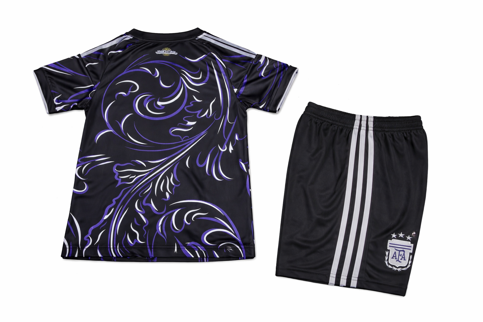 Val op met het Argentinië uittenue 2025/2026 in een unieke zwart/paarse uitvoering. Deze opvallende set bestaat uit een shirt en short en combineert een moderne, krachtige uitstraling met het herkenbare karakter van Argentinië.