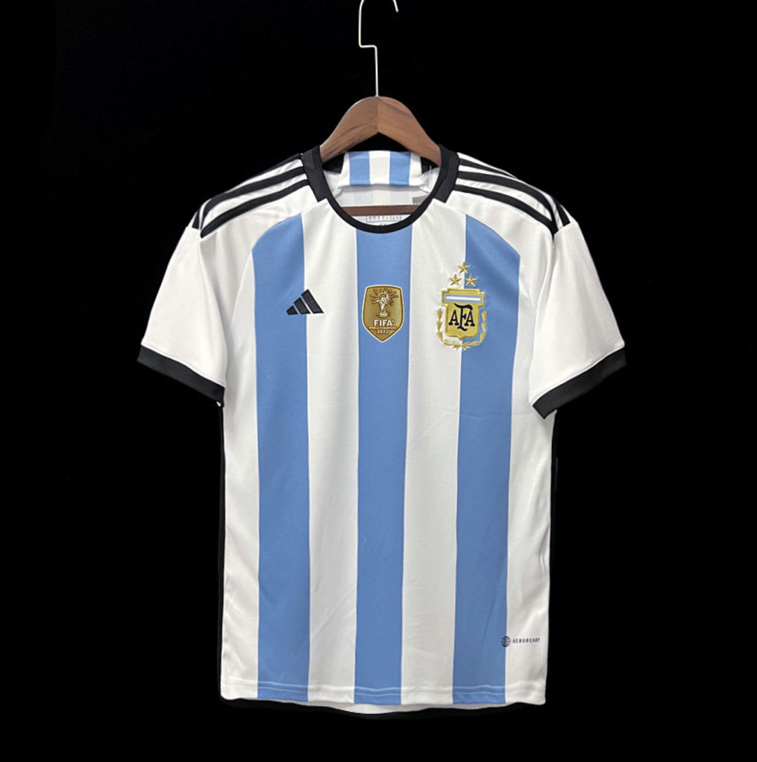 Het Argentinië WK Thuisshirt 2022 is meer dan alleen kleding; het is een icoon van glorie en onvergetelijke triomf. Dit legendarische voetbalshirt vangt de ziel van een natie die de wereld veroverde en draagt de echo’s van een historische overwinning met zich mee.