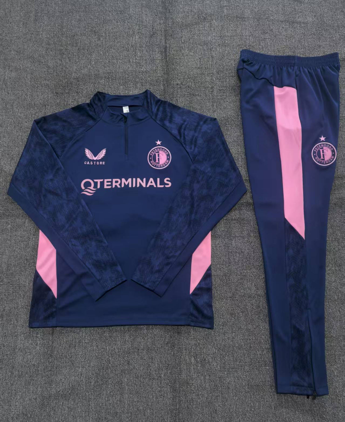 Dompel jezelf onder in de onvergetelijke sfeer van De Kuip met het gloednieuwe Feyenoord Trainingspak 25/26. Dit premium trainingspak, speciaal ontworpen voor het Eredivisie seizoen 25/26, belichaamt de Rotterdamse trots en onverzettelijke clubspirit. Vervaardigd uit topkwaliteit materialen, biedt het de ideale combinatie van stijl en comfort, op het veld én op de tribune. Het is de ultieme uitdrukking van jouw clubliefde.