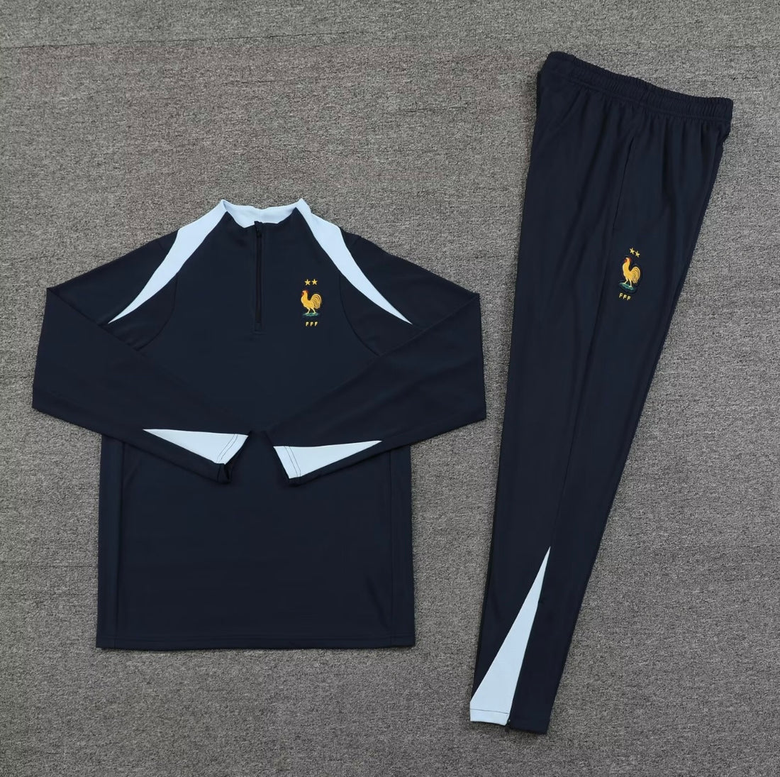 Stap in de wereld van Franse voetbalglorie met het officiële Frankrijk Trainingspak 24/25. Dit premium trainingspak is meer dan kleding; het is een symbool van nationale trots en de onverzettelijke geest van *Les Bleus*. Speciaal ontworpen voor het komende seizoen, straalt het de elegantie en kracht uit die we van het Franse elftal kennen. Voel de superieure kwaliteit en het comfort, waardoor jij je direct verbonden voelt met de sterren op het veld. Het is de ultieme uiting van jouw onvoorwaardelijke steun voor Frankrijk.
