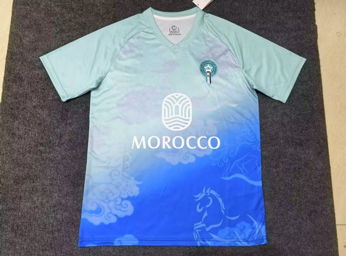 De Marokko blauw special edition 24/25 is meer dan alleen een voetbalshirt; het is een eerbetoon aan de ongeëvenaarde passie en de rijke voetbalhistorie van een trotse natie. Dit unieke Marokko shirt vangt de essentie van de Marokkaanse spirit en de ambitie van het nationale team op weg naar nieuwe successen. Gemaakt voor de ware supporter die zijn liefde voor de Atlas Leeuwen met stijl wil uitdragen, zowel op de tribune als daarbuiten.